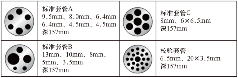 六孔(9.5mm、8.0mm、6.4mm、6.4mm、4.5mm、4.5mm)
